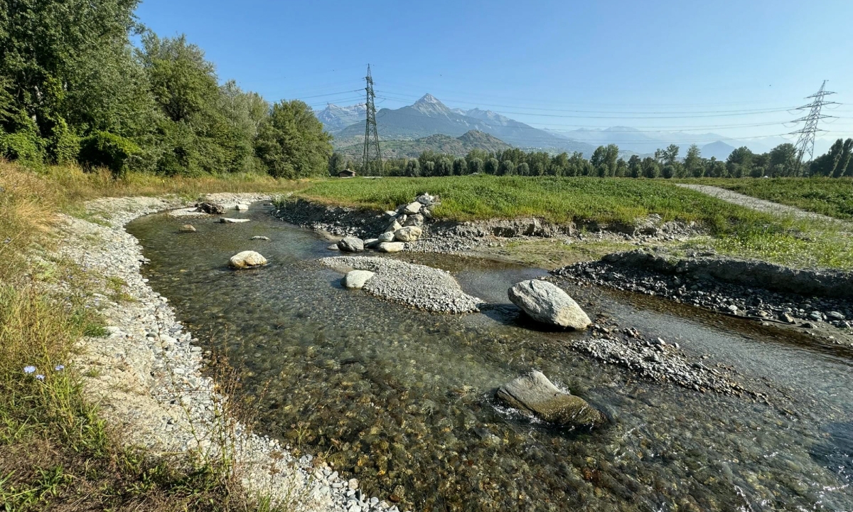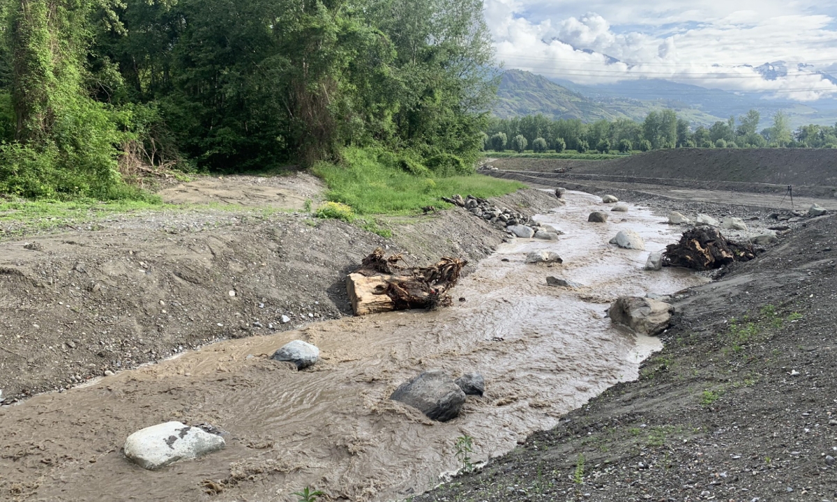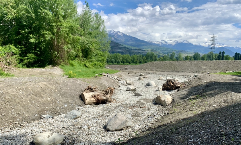 Dans le cadre de la mesure d’équilibrage de la MA Aproz (3ème correction du Rhône), une partie de la place de tir de Pra Bardy a été transformée en une nouvelle zone naturelle à haute valeur biologique, principalement grâce à la création d’un nouveau bras de la Printse.